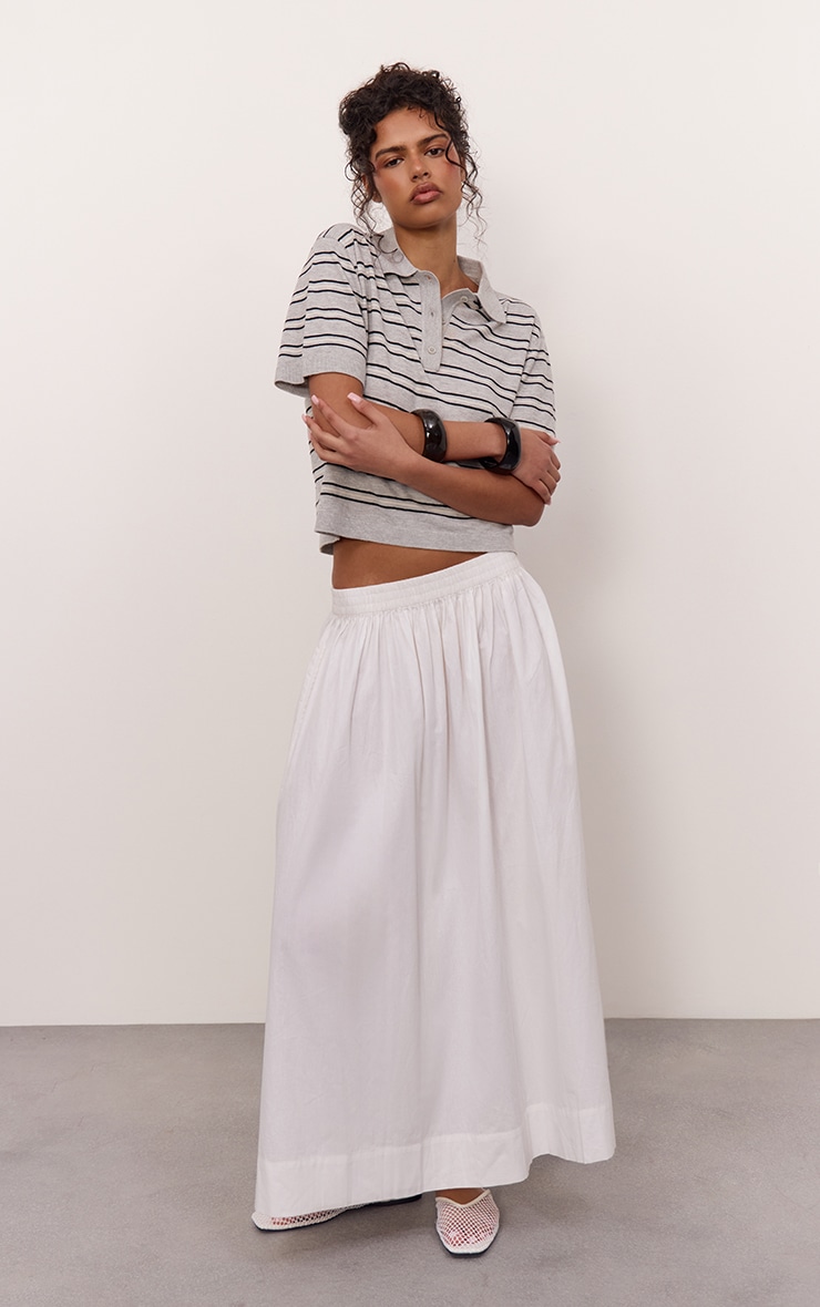 Jupe mi-longue en coton blanc à poches