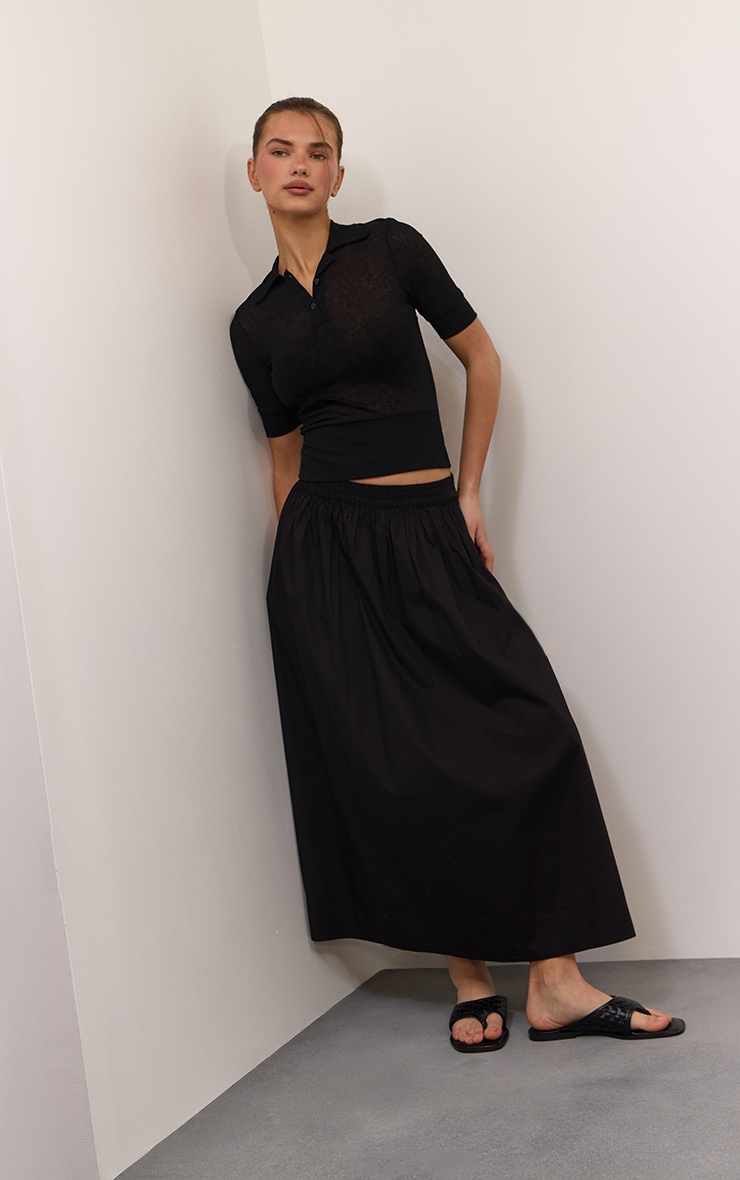 Jupe longue texturée noire à taille mi-haute