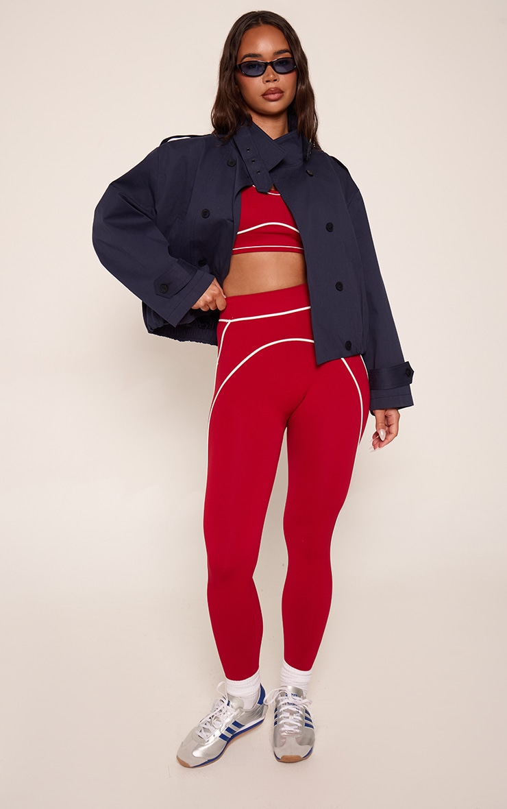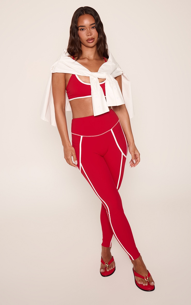 Legging rouge sans coutures à détails contrastés